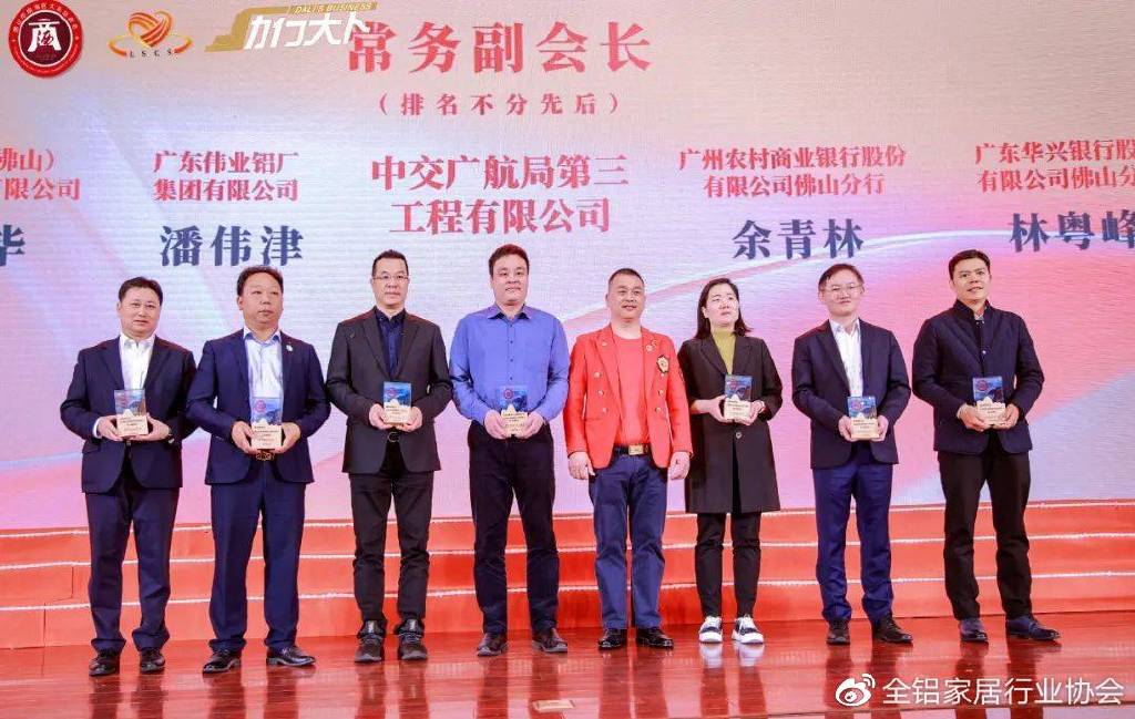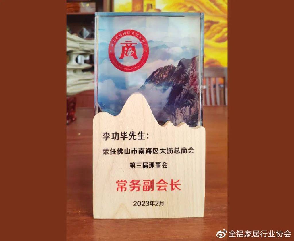 2023年2月28日下午,佛山市南海区大沥总商会、大沥沥商慈善会召开会员大会,大会表决通过大沥总商会新增常务副会长、理事单位,佛山市南海区全铝家居行业协会会长、李氏明进(佛山)新材料科技有限公司董事长李功毕当选为大沥总商会常务副会长,并在晚上“拼搏实干争朝夕 凝心聚沥启新程”大沥总商会2023年新春联谊晚会授牌。我协会加入成为大沥总商会团体会员单位,会长李功毕荣任大沥总商会常务副会长,全体会员成为大沥总商会会员,不仅体现各级政府和社会各界对于大沥全铝家居产业和协会工作的认可,也是对于全体会员的莫大鞭策和激励!