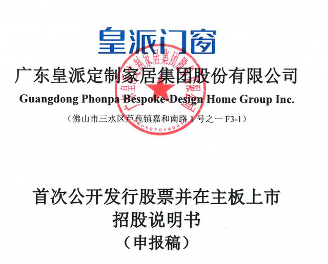最近,千年舟、马可波罗、悍高集团、时代装饰等家居企业IPO纷纷获深交所受理,最新一家则是广东皇派定制家居集团(简称:皇派家居)。