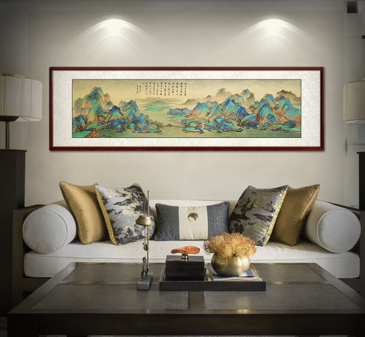 《千里江山图》的流传至今,足以证明其在中国艺术史上的地位和影响力。尚得堂两位名家的仿作,更是将这幅国宝的魅力延伸到了千万家庭。如今,越来越多的人对家居空间有了更高的要求,希望将艺术品与家居环境相融合。而尚得堂的这两幅画作,正是将国宝与现代生活巧妙结合的典范。