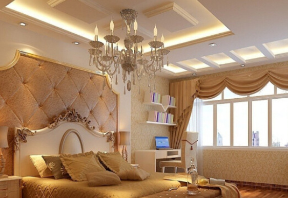 卧室吊顶装饰过于花哨;卧室里的灯,建议一定要采用比较平稳的为好,如果过于花哨,或者像如图,这种吊灯的模式,在床的上方不利于睡眠。同时内心有压抑感。
