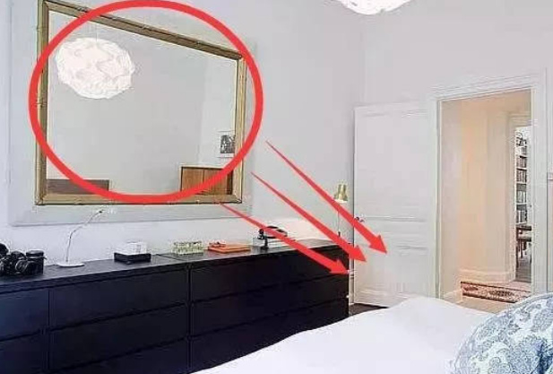 卧室镜子正对床;镜子在卧室之中,切不能对着床,否则很容易影响到睡眠,因为晚上起来很容易被镜子中的自己而吓到,所以建议卧室里面镜子最好用暗镜,放在衣橱里为好。