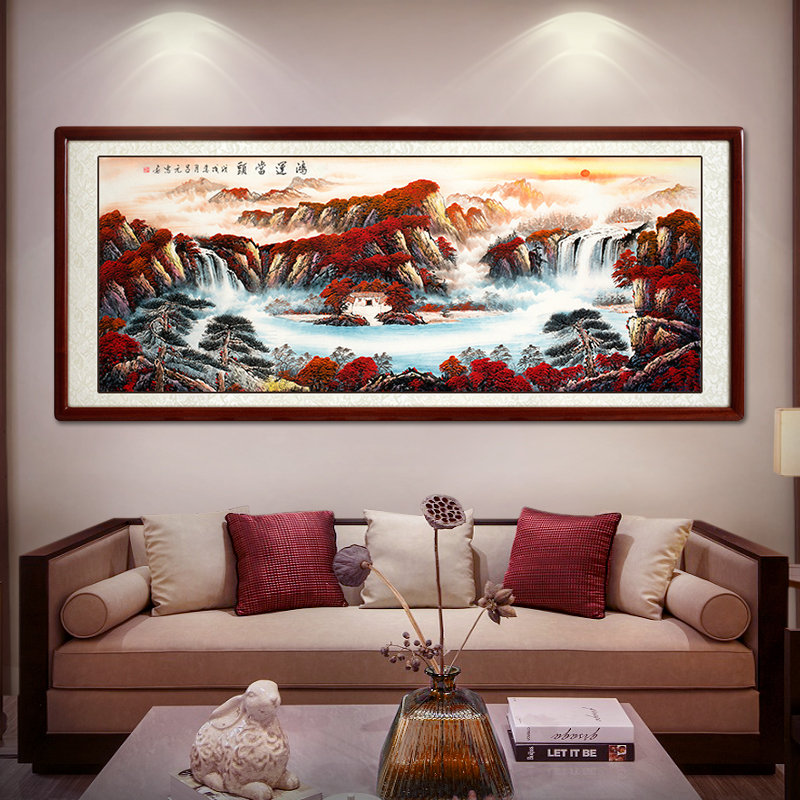 客厅挂画:客厅是家庭成员及亲朋好友聚集的场所,挂画以展现主人的品味和气质为主。选择一幅大幅山水画作为背景墙,既能营造出庄重典雅的氛围,又能展现出主人对传统文化的热爱。