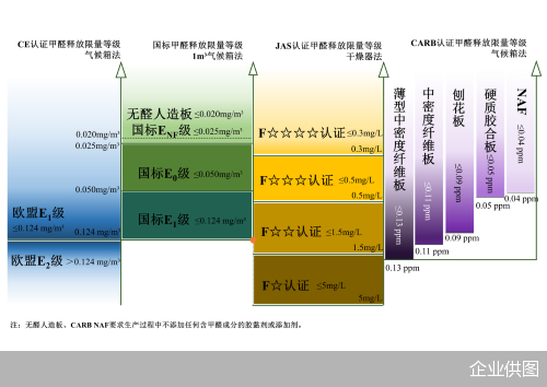 总体而言,《指南》的核心创新在于两大工具:一是“全球标准对比图”,系统梳理并对比了国内外的人造板甲醛释放限量标准体系,清晰展示了我国标准在限值严格性与技术完整性上已领跑全球,树立起坚实的“中国标准自信”。比如,中国关于无醛人造板定义及甲醛释放限量要求≤0.020 mg/m³,已超越美国CARB NAF、日本F4星等国际标准,成为全球最严苛的“天花板”。
