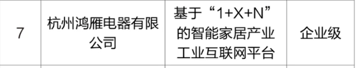 鸿雁“基于1+X+N’的智能家居产业工业互联网平台” 成功入选2025年度省级工业互联网平台,成为省内首批获此殊荣的智能家居类平台。