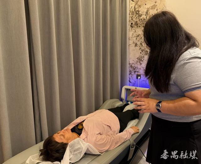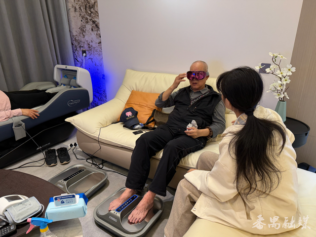 作为全国数字家庭建设试点,番禺区积极推进医康养一体化发展。此次公益活动以“中医治未病和慢病管理”为核心,吸引众多市民踊跃参与。记者在现场看到,健康小屋不仅提供体温、心率、血压、血氧等基础检测并生成电子健康档案,还有脊柱理疗床、眼部按摩仪、脚部按摩仪等康养设备,让市民一站式感受多元健康服务。“这个仪器太舒服了!热气从脚底往腿部蔓延,暖流裹着酸胀感慢慢散开,小腿轻松多了。”刚体验完脚部按摩仪的市民连连称赞。体验脊柱理疗床的市民更是竖起大拇指:“平时颈椎不适,做理疗又嫌麻烦,今天体验后脖子明显舒缓了。听说小屋长期开放,以后一定常来,还会叫上老邻居一起预约。”